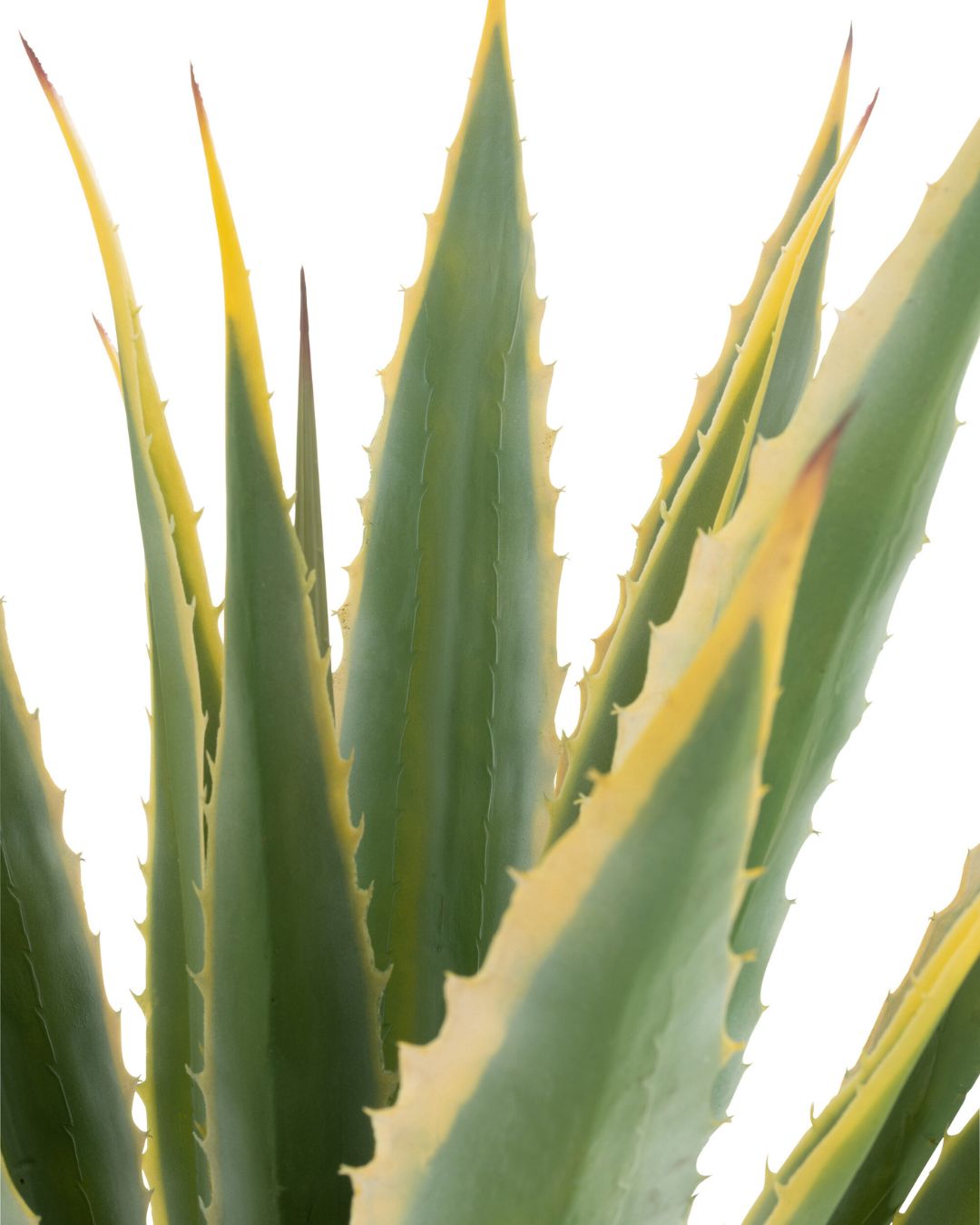 تحاكي هذه النبتة الصناعية المدهشة جمال نبات الأغاف الصحراوي بأدق تفاصيله، حيث تتناغم درجات الأخضر مع أطراف مائلة للذهبي لتمنحها واقعية لافتة تأسر النظر.