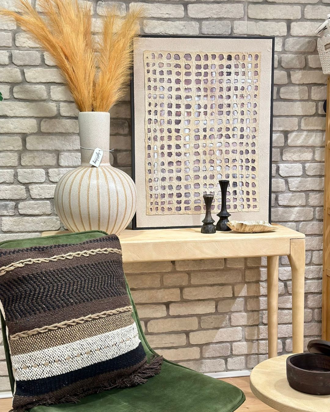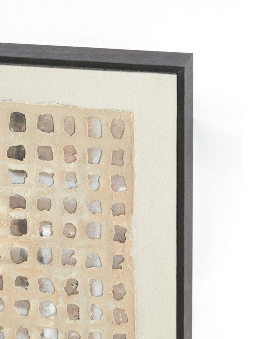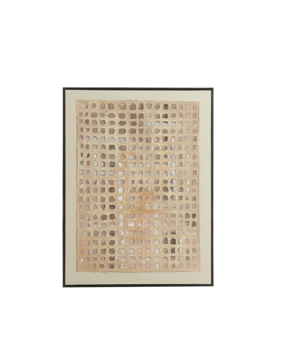 تُجسد هذه اللوحة الجدارية أرقى مفاهيم البساطة الفنية والحداثة في آنٍ معًا، حيث تتداخل المربعات المتناغمة بألوان البيج والرملي والدرجات الترابية الناعمة، فتمنح المساحة المحيطة هدوءًا بصريًا وتوازناً دافئًا. تأتي الخطوط واللمسات العفوية في الرسم لتعكس جمال الطبيعة ودفء اللون، مما يجعل كل لوحة فريدة بذاتها كأنها قطعة أصلية مرسومة يدويًا.