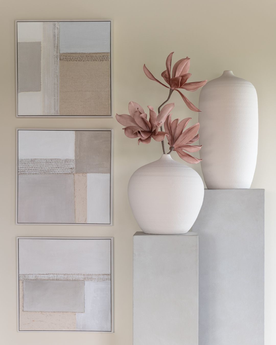 إطارها البسيط يعزز من جمالية التصميم، مما يسمح لكِ بتنسيقها بسهولة مع مختلف أنماط الديكور، سواء في غرفة المعيشة، المكتب، أو حتى المدخل. اختيار مثالي لمن تبحث عن ديكور هادئ ومميز يعكس ذوقًا راقيًا ولمسات فنية متجددة.