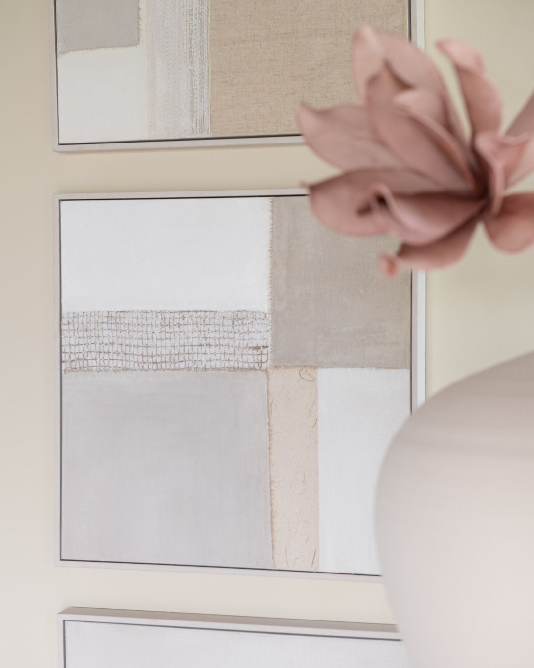 أضفي لمسة من الحداثة والتوازن البصري إلى مساحتكِ مع هذه المجموعة الجدارية العصرية، التي تجمع بين الألوان الهادئة والتصاميم الهندسية المتناغمة. تتناغم الدرجات الترابية والحيادية في تفاصيل اللوحات الثلاث، مما يخلق انسجامًا بصريًا يضفي شعورًا بالراحة والدفء.