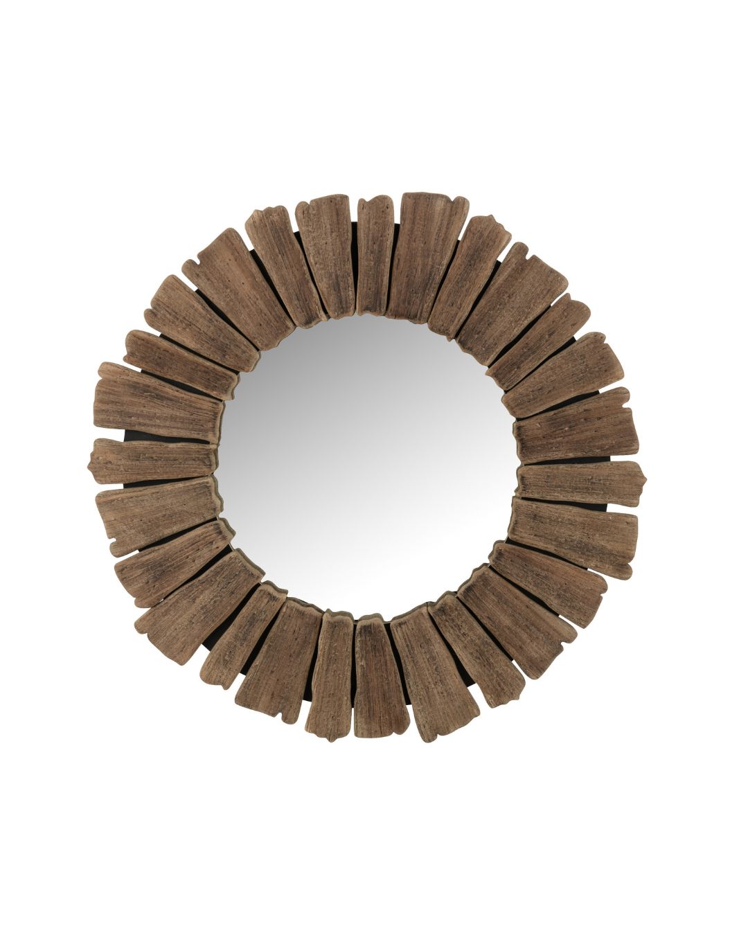 أضيفي لمسة من الأصالة والطبيعة إلى ديكور منزلكِ مع هذه المرآة الرائعة المزودة بإطار خشبي طبيعي. التصميم الدائري مع التفاصيل الخشبية يعكس جمال المواد الطبيعية بلمسة عصرية وأنيقة.