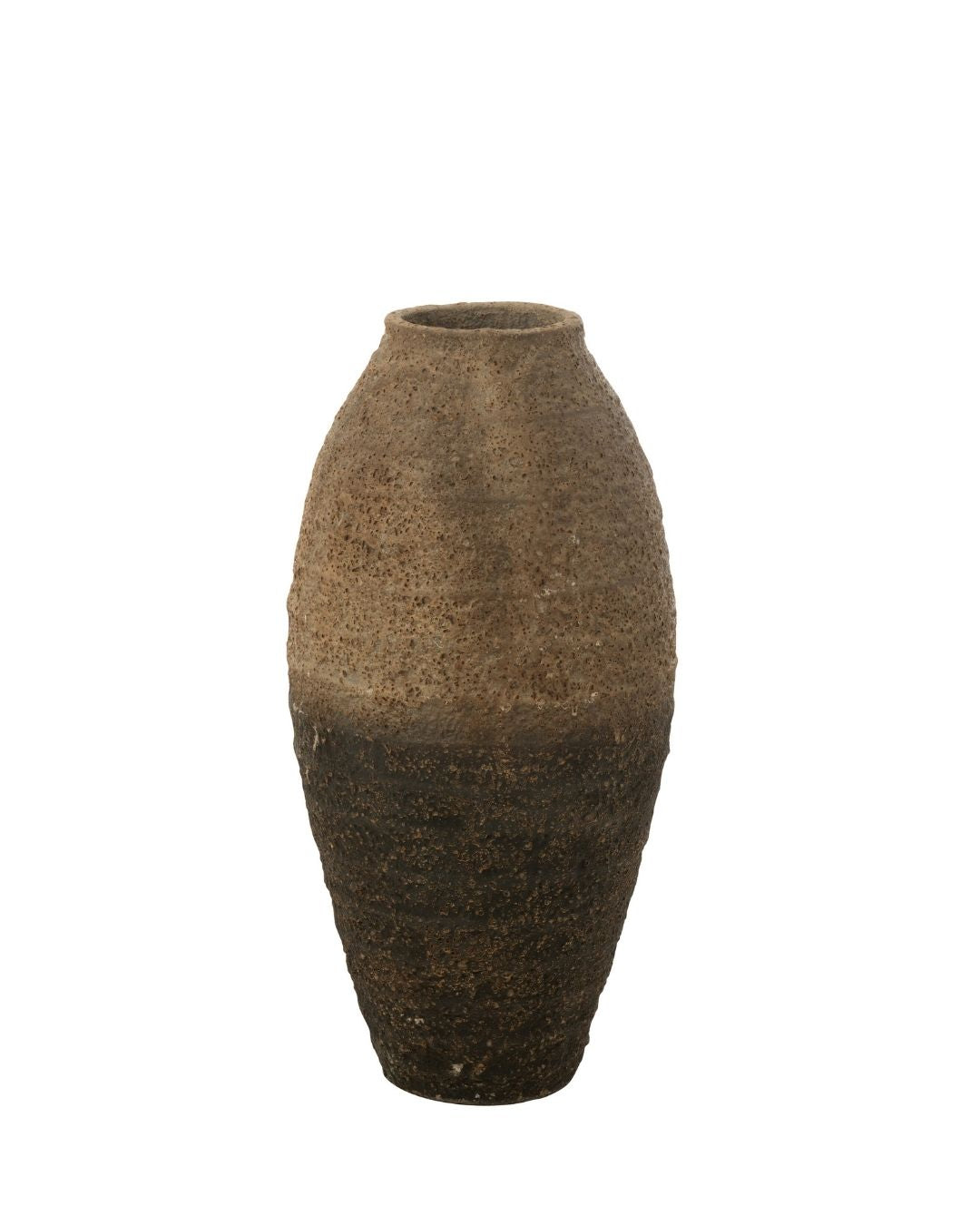 تعكس هذه المزهرية بتدرجاتها البنية الفاخرة حضور الطبيعة الدافئة وروح الحرف اليدوية الأصيلة. يتألق ملمسها الحجري بتفاصيله الطبيعية التي تمنح القطعة طابعًا ترابيًا عميقًا، ما يجعلها خيارًا مثاليًا لإضفاء لمسة غنية وراقية على ديكور المساحة الداخلية. أما لونها البني المتدرج فيحاكي جمالية الصخور النحتية ويبرز تناغم الألوان مع قطع الخشب والعناصر الطبيعية الأخرى.