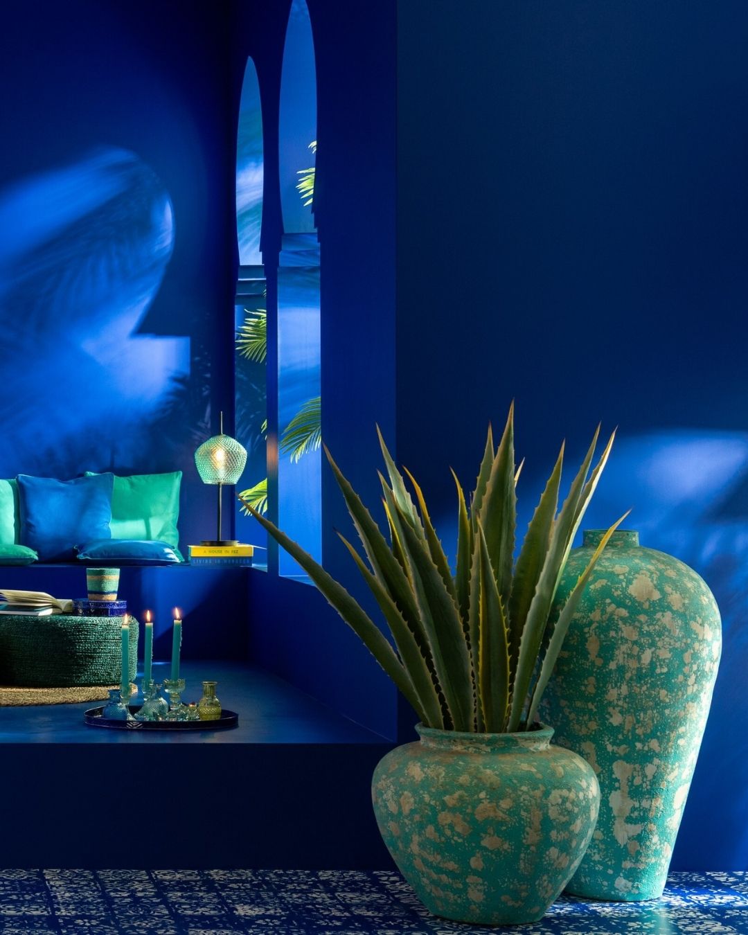 جربي وضعها في زاوية مضاءة بالقرب من نافذة كبيرة، أو في ركن فني إلى جانب مقاعد بألوان ترابية وسجاد مزخرف. يمكنكِ دمجها مع إكسسوارات بألوان محايدة أو حتى مزهريات صغيرة من اللون نفسه لتعزيز التوازن البصري، كما تلائم المساحات الحديثة ذات الطابع البوهيمي.