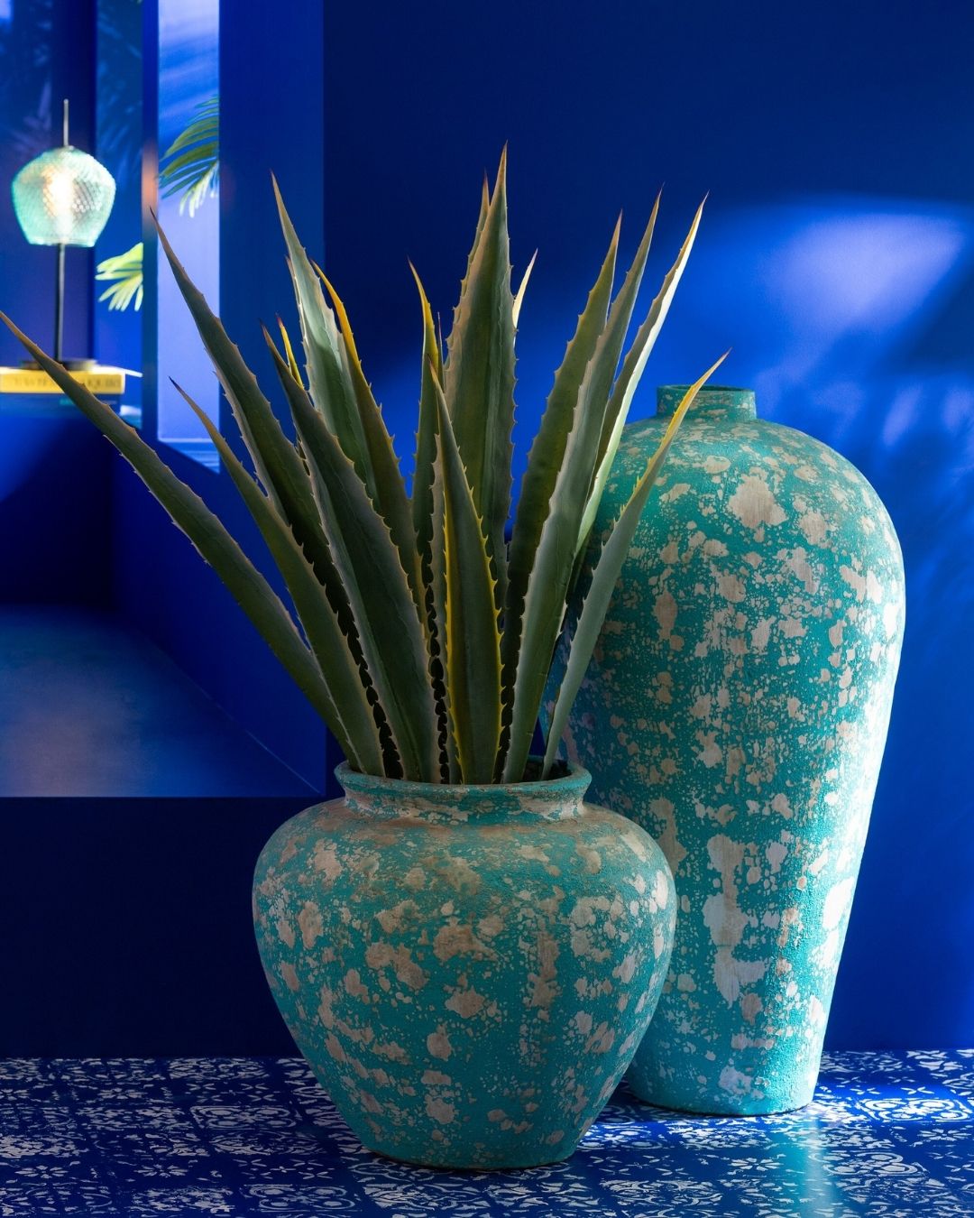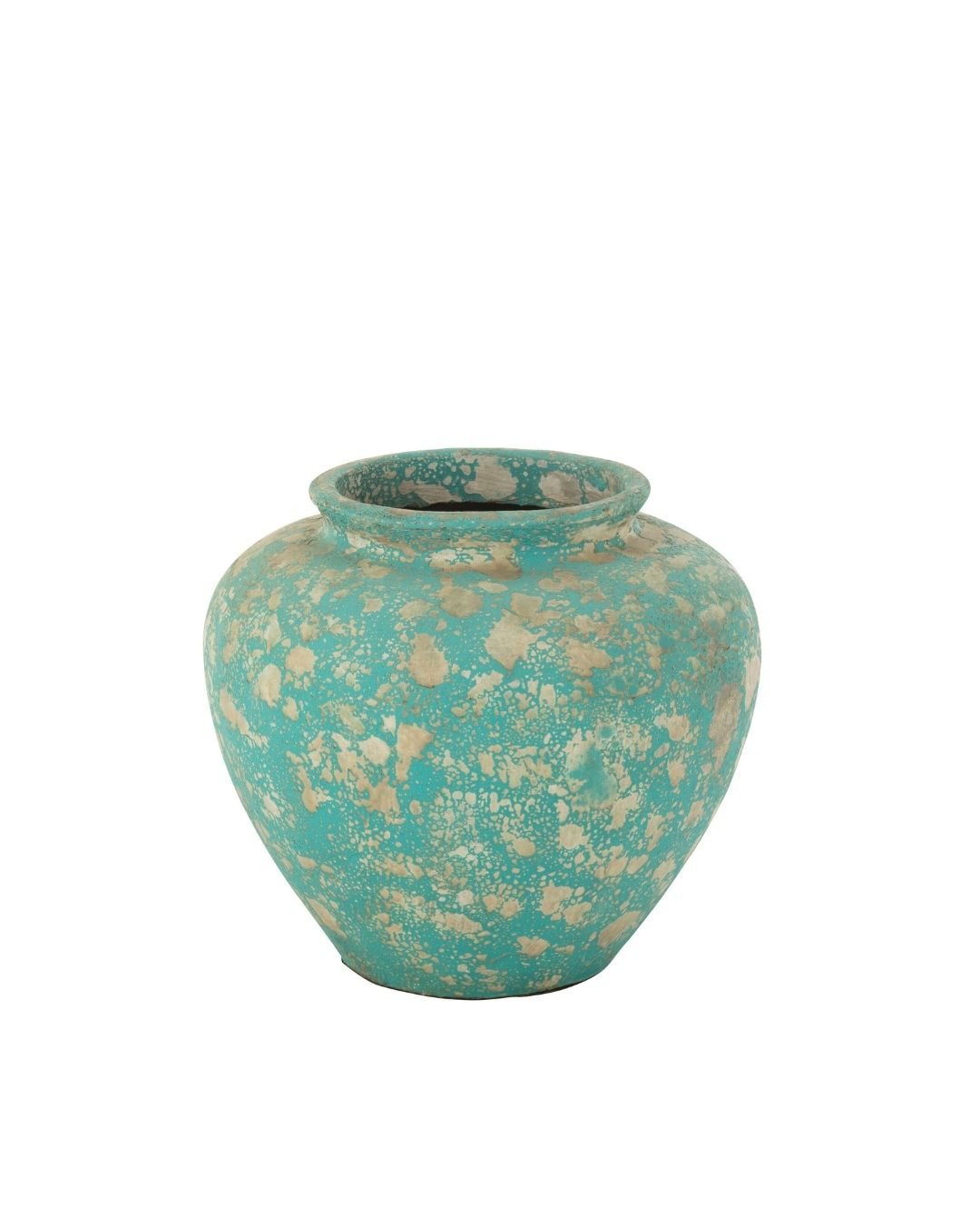 مزهرية فخارية مستديرة باللون التركوازي ولمسة فنية عصرية