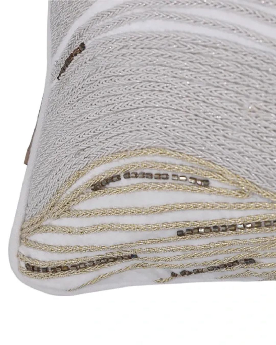 وسادة فاخرة مطرّزة بخيوط الذهب والخرز الزجاجي – تصميم انسيابي أنيق