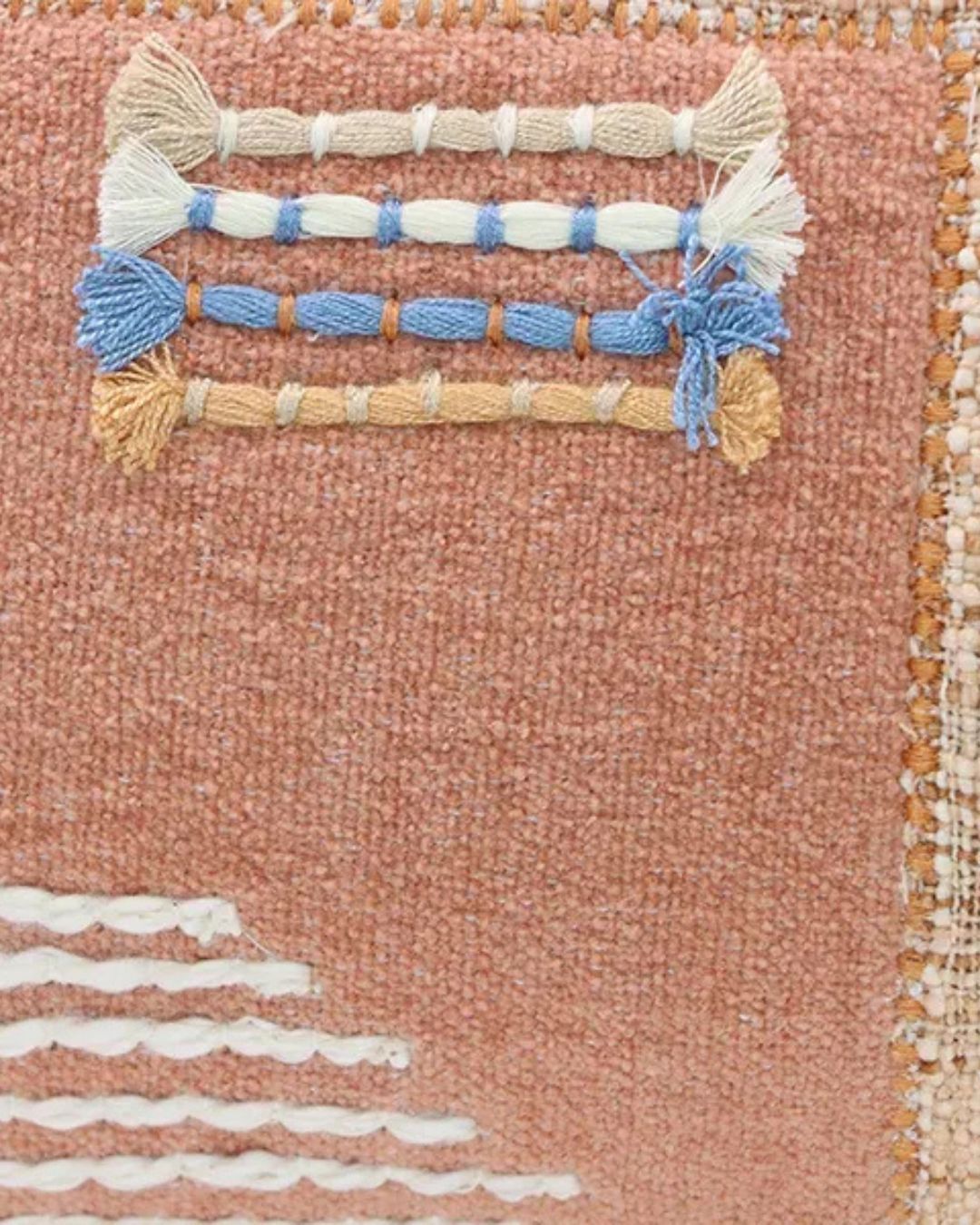 أضف لمسة من الأناقة والدفء إلى مساحتك مع هذه الوسادة الديكورية الفريدة. تأتي بتصميم يجمع بين النمط التقليدي والحديث، حيث تتميز بنسيج متداخل يجسد تفاصيل يدوية متقنة بألوان ترابية دافئة تضفي إحساسًا بالراحة والانسجام على أي مكان توضع فيه.