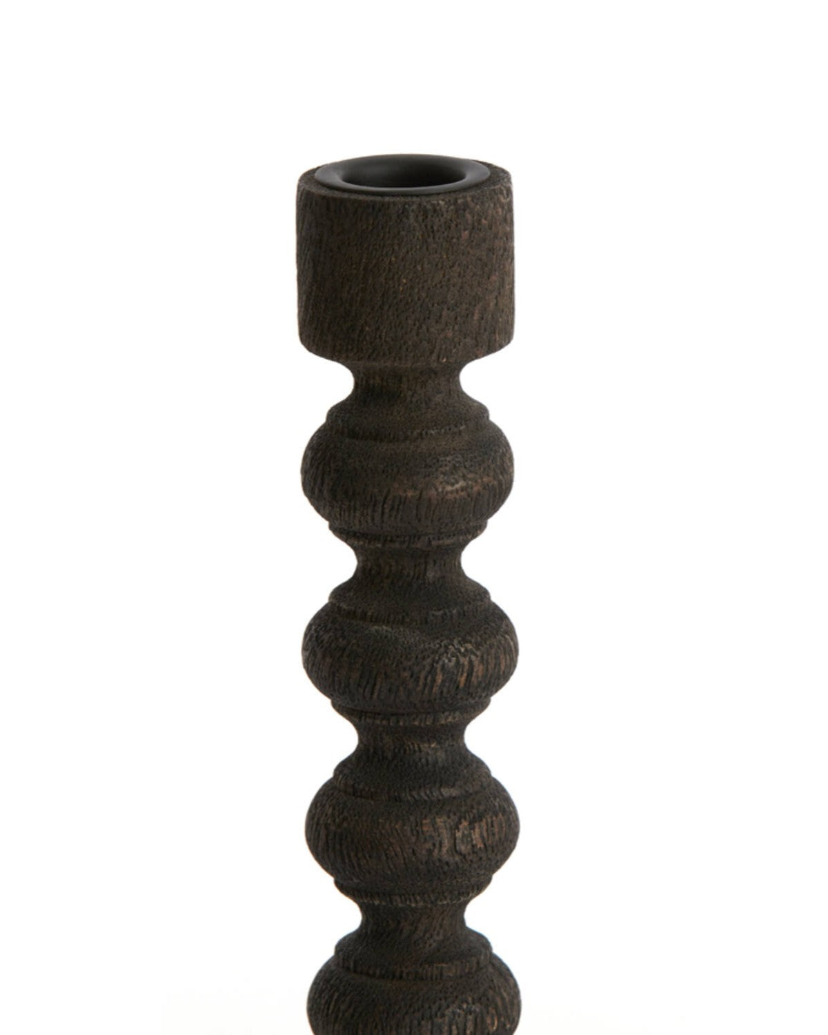 شمعدان خشبي أسود بتصميم منحوت كبير