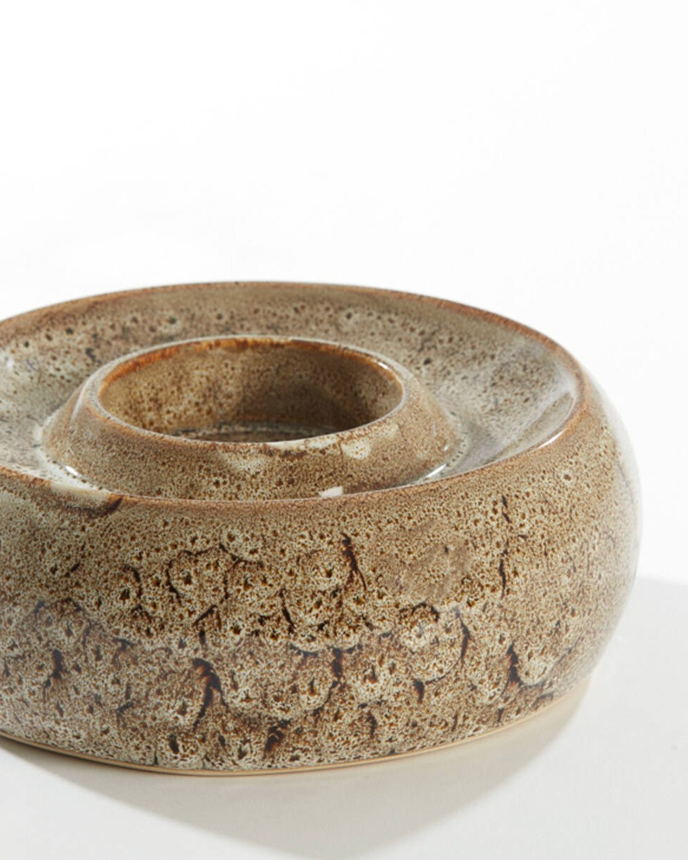 تحفة ديكورية تُجسد سحر الأرض وجمال الحرف اليدوية، حيث يلتقي التصميم العصري بالملمس الحجري الأصيل في قطعة واحدة. هذا الشمعدان الكبير يأتي بخامة السيراميك الفاخر، وألوان ترابية غنية تبرز تفاصيل السطح المميز بنقوش وتعرجات طبيعية، تمنحه حضورًا استثنائيًا في أي ركن من أركان المنزل.