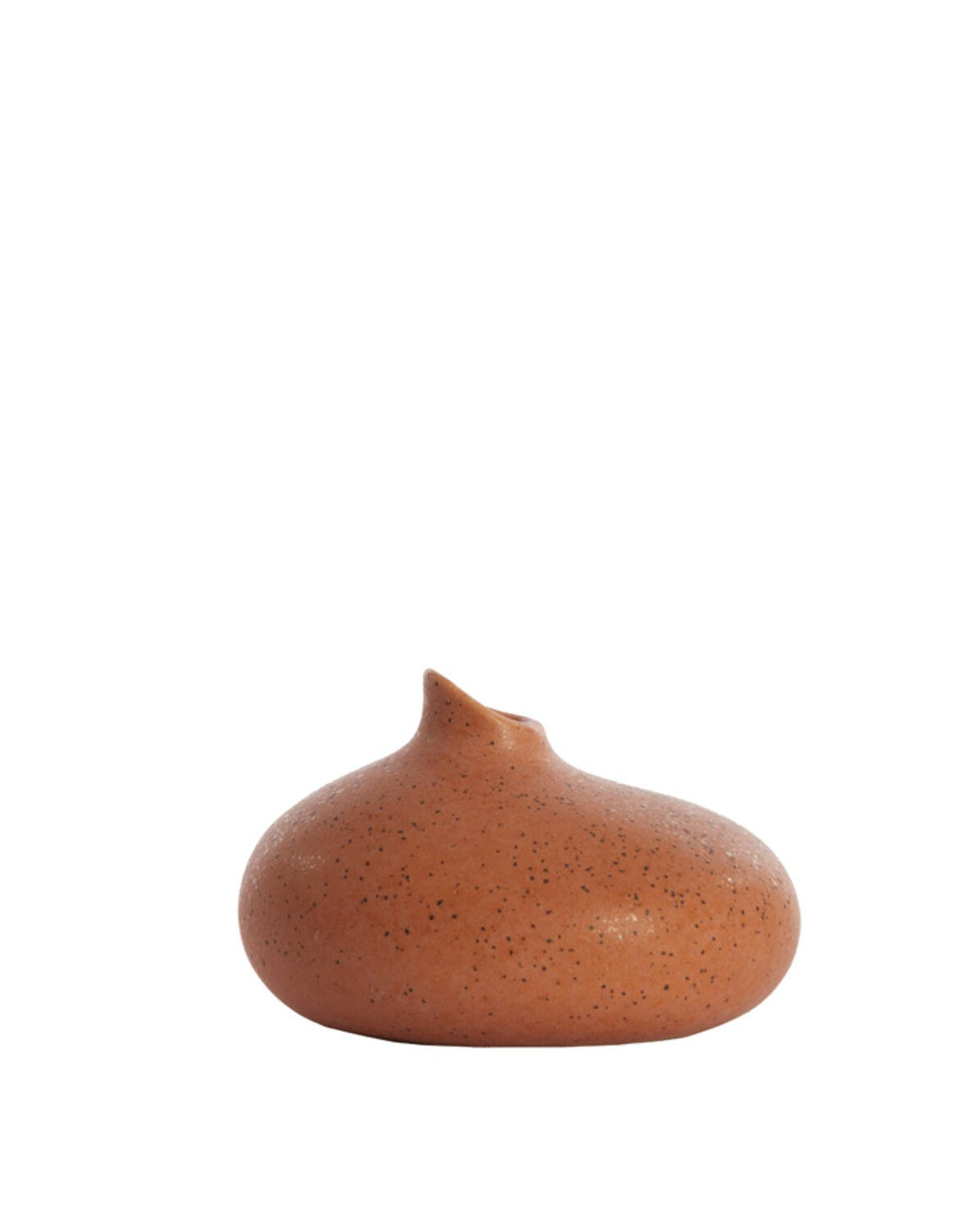مزهرية بتفاصيلها الفريدة تجسد نقاء الطين وسحر الأشكال العضوية، فتصبح وكأنها منحوتة أبدعتها الطبيعة بيد فنانة تعشق البساطة. لونها القرميدي الدافئ ولمعانها الخفيف مع النقاط الصغيرة يمنحانها طابعًا خاصًا ويجعلانها نقطة جذب في أي زاوية تضعينها فيها.