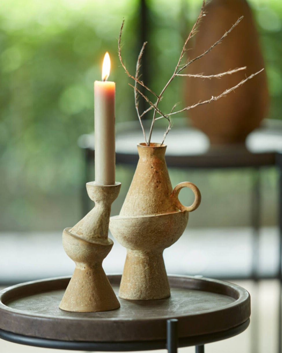 - يتوفر منها أيضاً شمعدان بنفس التصميم، بالإضافة إلى لون بني دافئ لتتمكني من ابتكار تنسيق