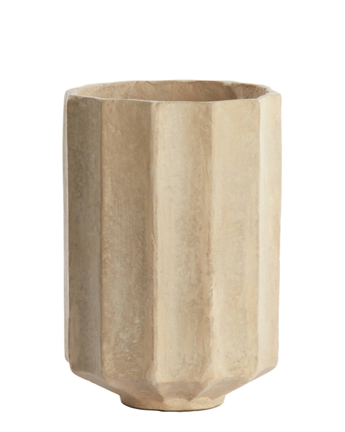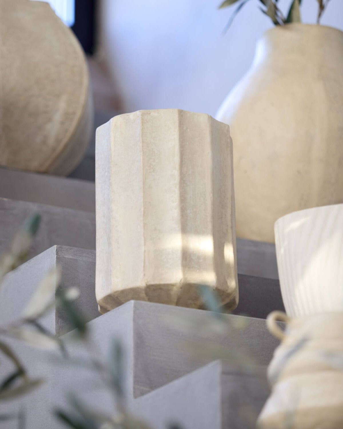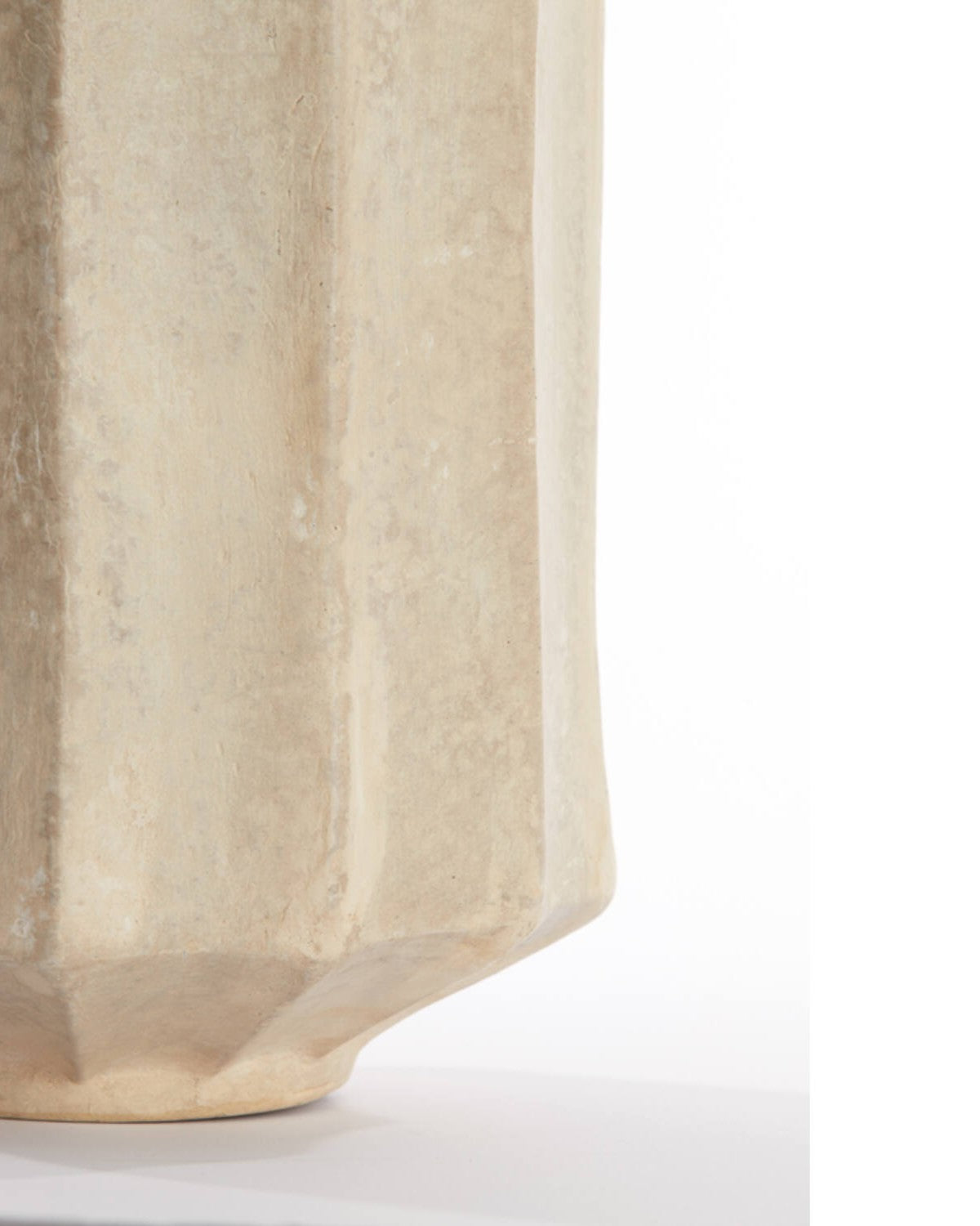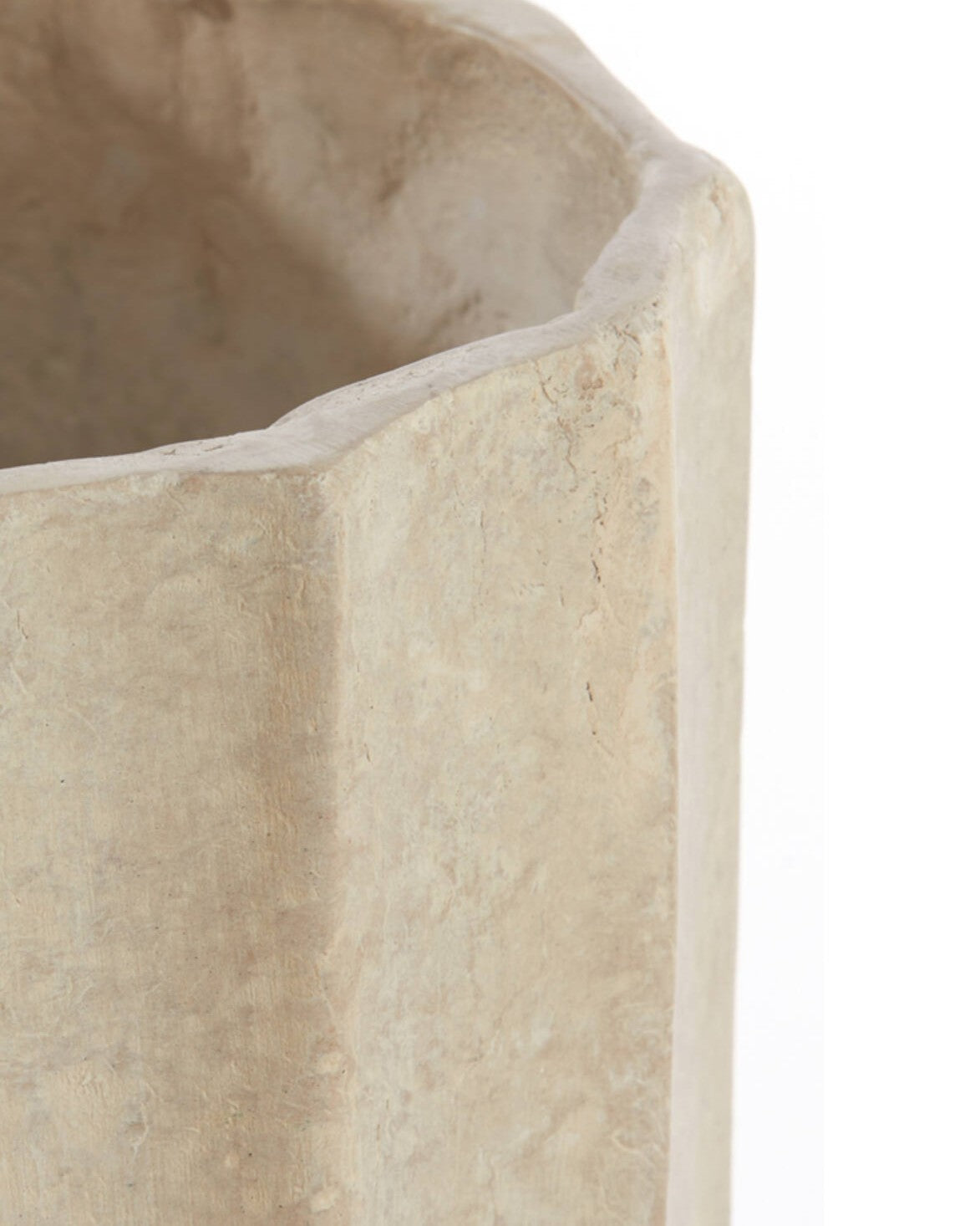 تحمل هذه المزهرية روح الحرفية اليدوية الأصيلة، حيث تتجلى الخطوط الهندسية البارزة على سطحها في مزيج متقن من العراقة والحداثة. لونها الحجري الهادئ وملمسها الطبيعي يمنحانها طابعًا فريدًا يليق بكل زاوية في منزلكِ، لتكون قطعة ديكور أساسية تجذب الأنظار وتضفي دفئًا وأناقة إلى أي مساحة.