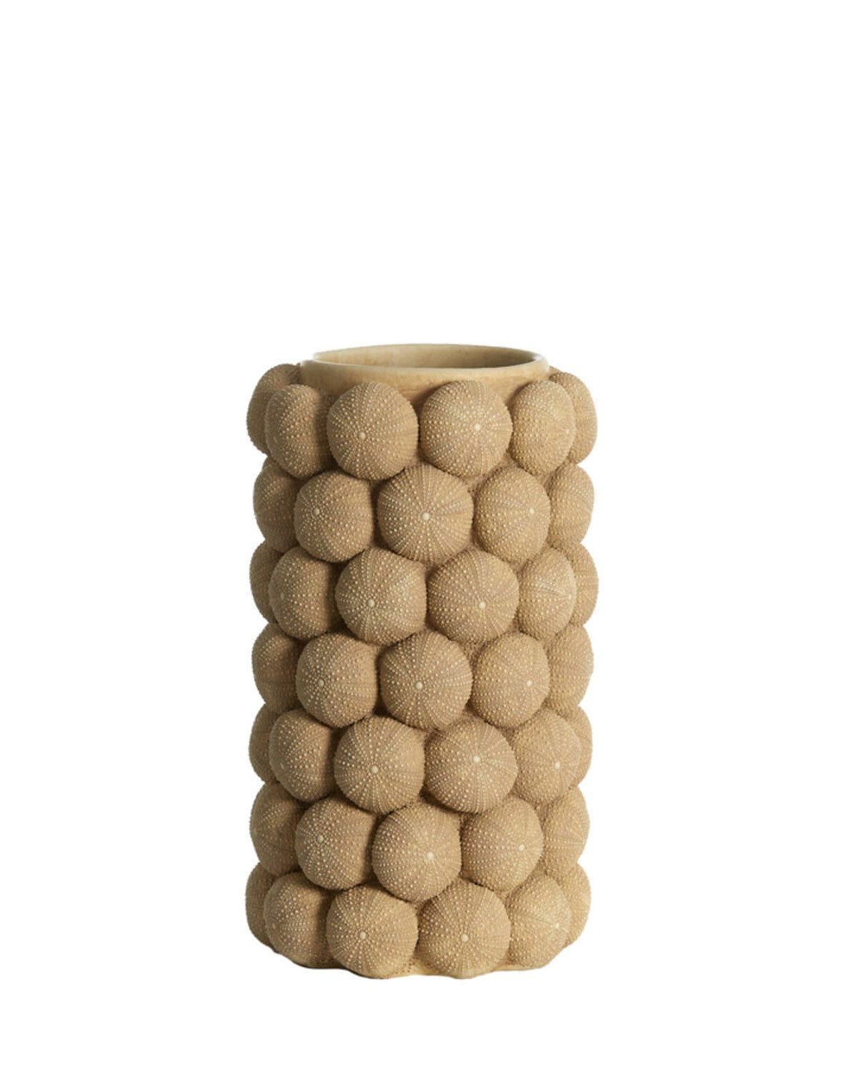 تجمع هذه المزهرية بين جاذبية التفاصيل البحرية وروح التصميم العصري، إذ تتميز ببروزات دائرية تحاكي قواقع البحر بلون رملي دافئ يضفي دفئًا طبيعيًا على أي مساحة. ارتفاعها اللافت يجعلها قطعة محورية تسرق الأنظار وتمنح ديكورك عمقًا وبعدًا بصريًا فريدًا.