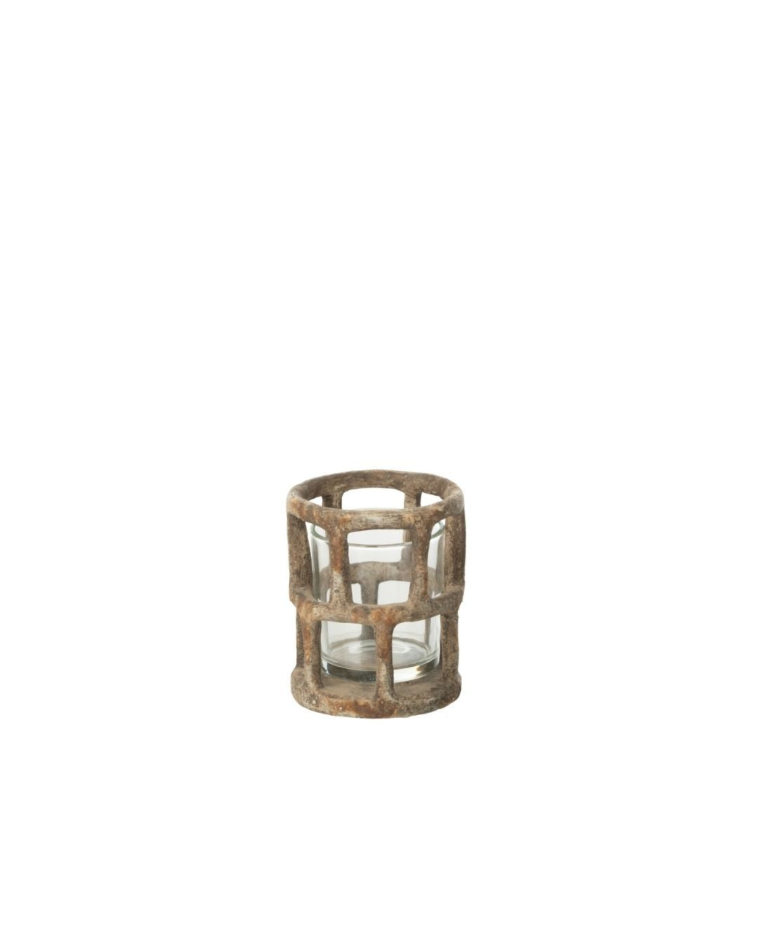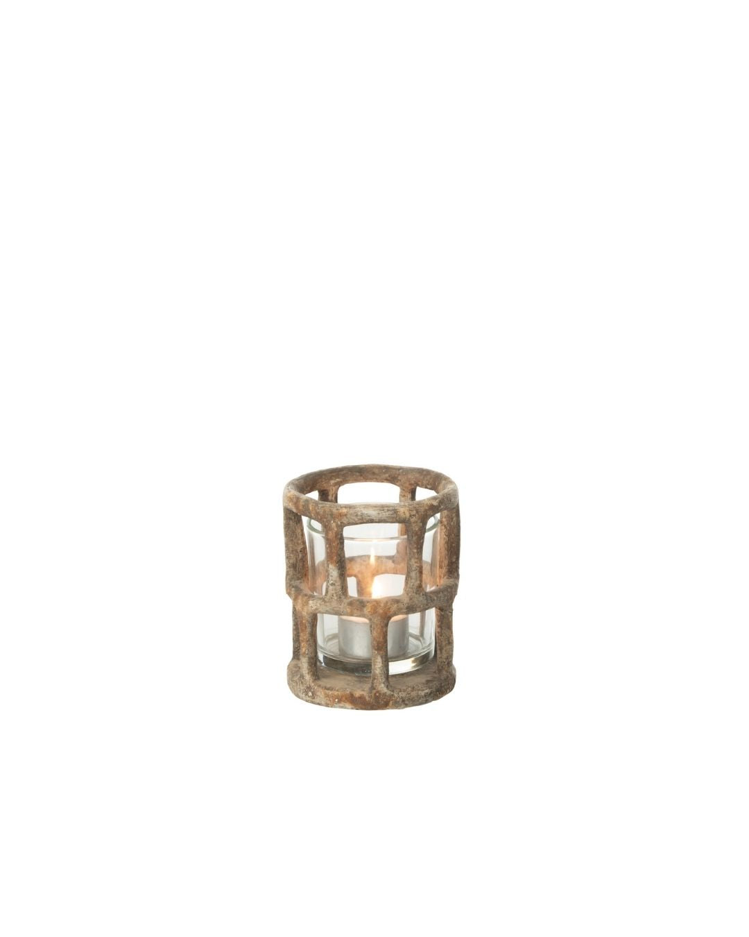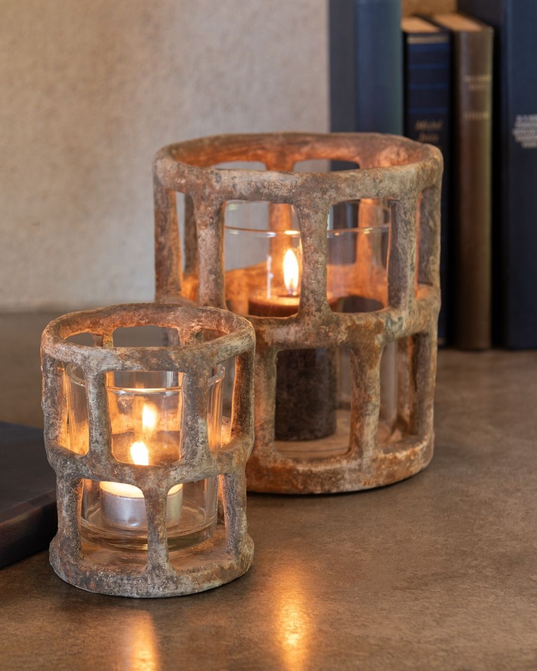 اجعلي أجواء منزلكِ أكثر دفئًا وجمالًا مع هذا الحامل الفريد للشموع، الذي يجمع بين الطابع العتيق والتصميم العصري بأسلوب متناغم. بفضل إطاره الشبكي المصنوع من الفخار بتأثير خام ولمسة معتقة، يضفي هذا الحامل لمسة من الأصالة والتميز على أي مساحة.