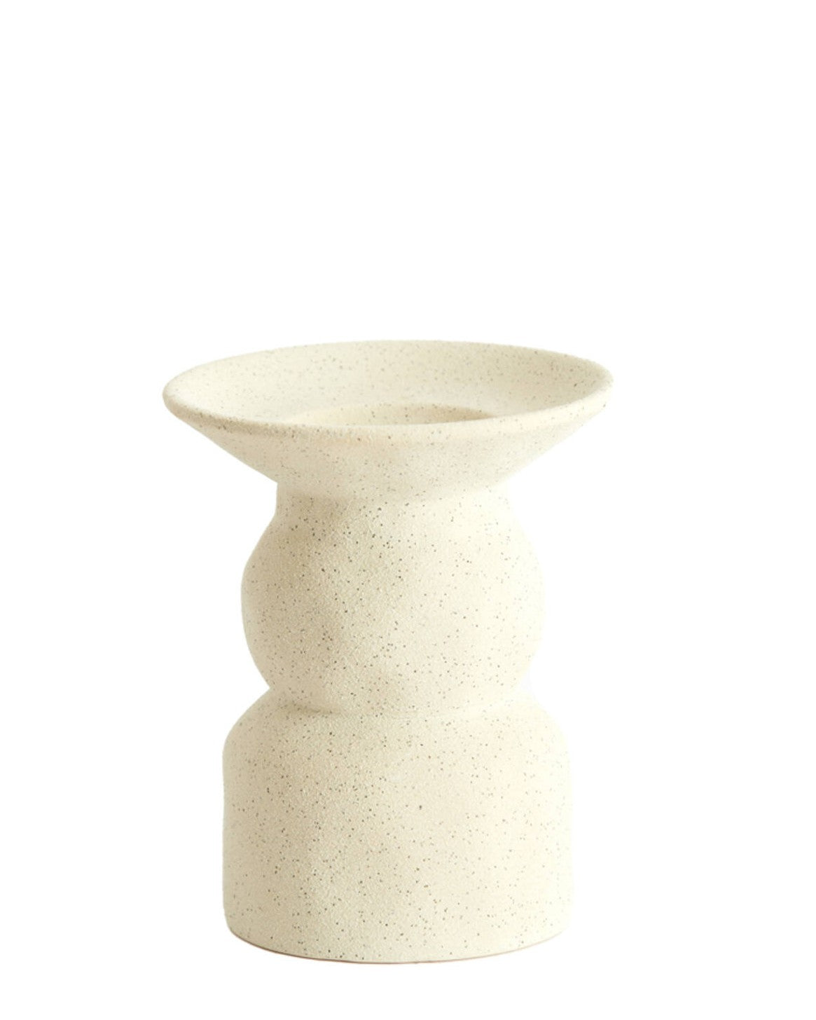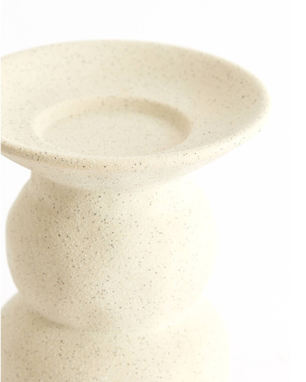 شمعدان خزفي عصري بتأثير رملي عاجي منقط