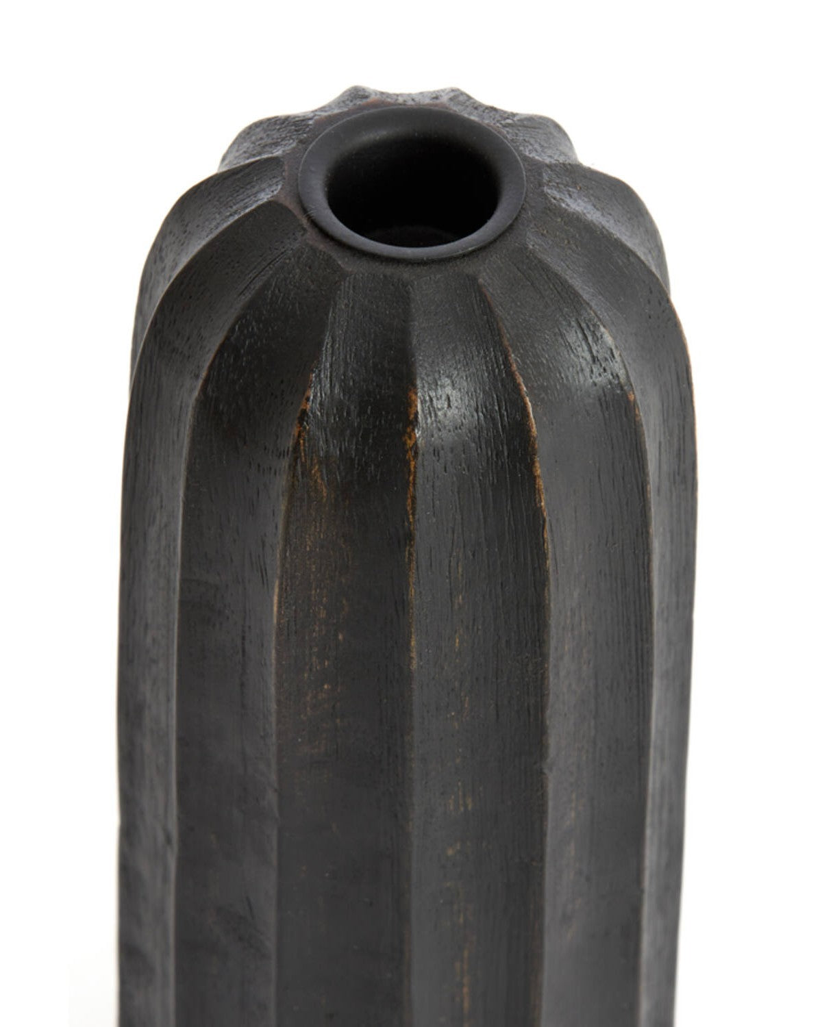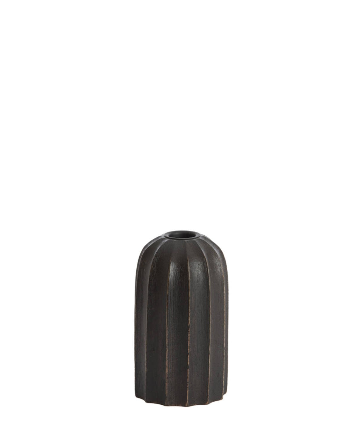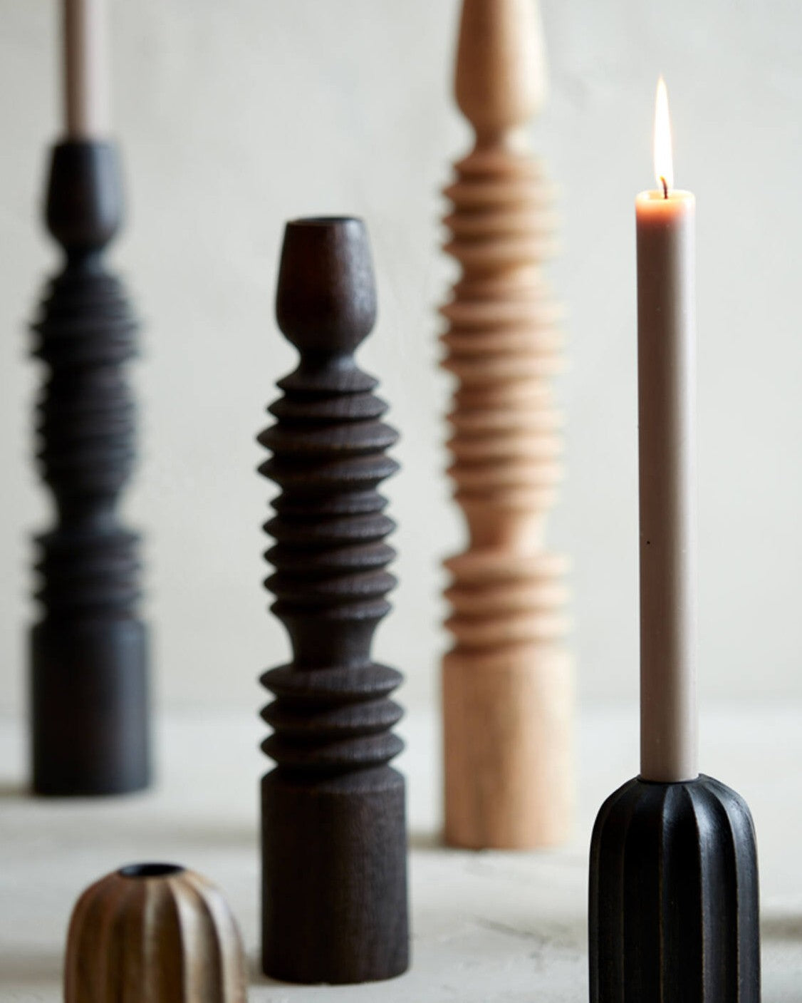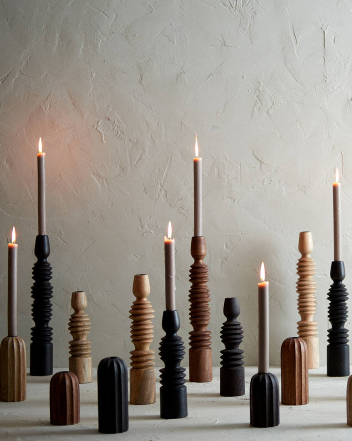 تتجلى التفاصيل المحفورة بعناية على سطح الشمعدان، ليظهر فيه عمق العروق وتدرجات اللون الداكن بتناسق مبهر. التصميم المتوازن يجعله قطعة أساسية على طاولة الطعام أو رف الاستقبال، أو حتى في ركن القراءة لإضفاء لمسة هادئة وراقية.