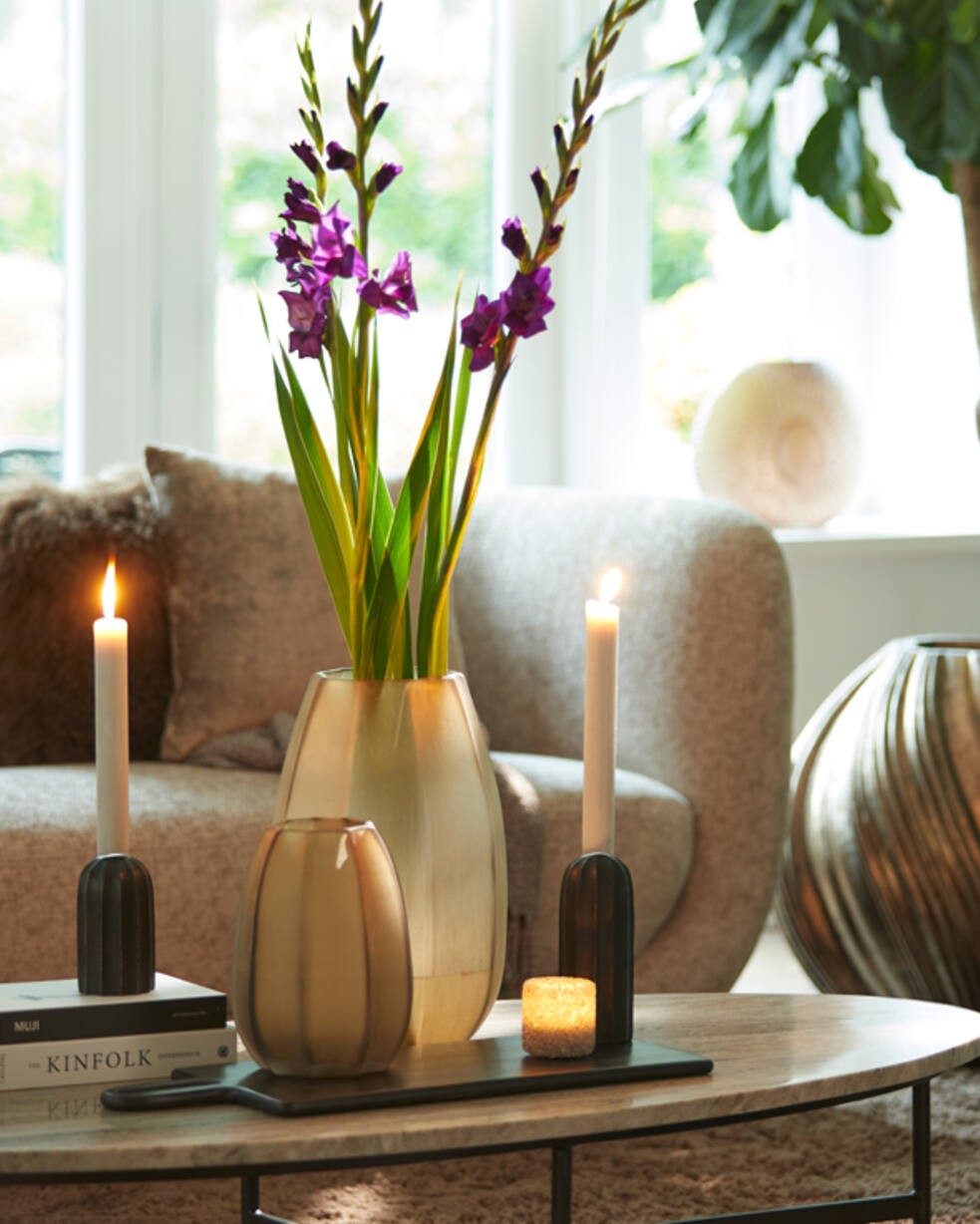 يمكن عرض هذا الشمعدان منفردًا أو ضمن مجموعة بألوان وأحجام مختلفة لابتكار تشكيلة متناغمة تناسب جميع الأذواق والمساحات. متوفر بعدة مقاسات وألوان ليمنحكِ حرية الاختيار وتخصيص ديكور منزلك كما ترغبين.