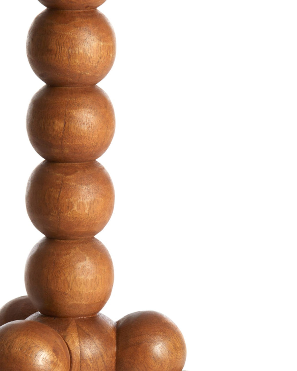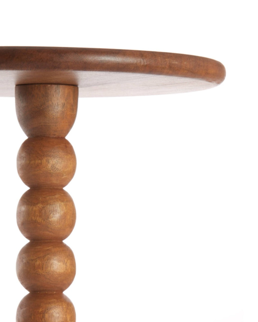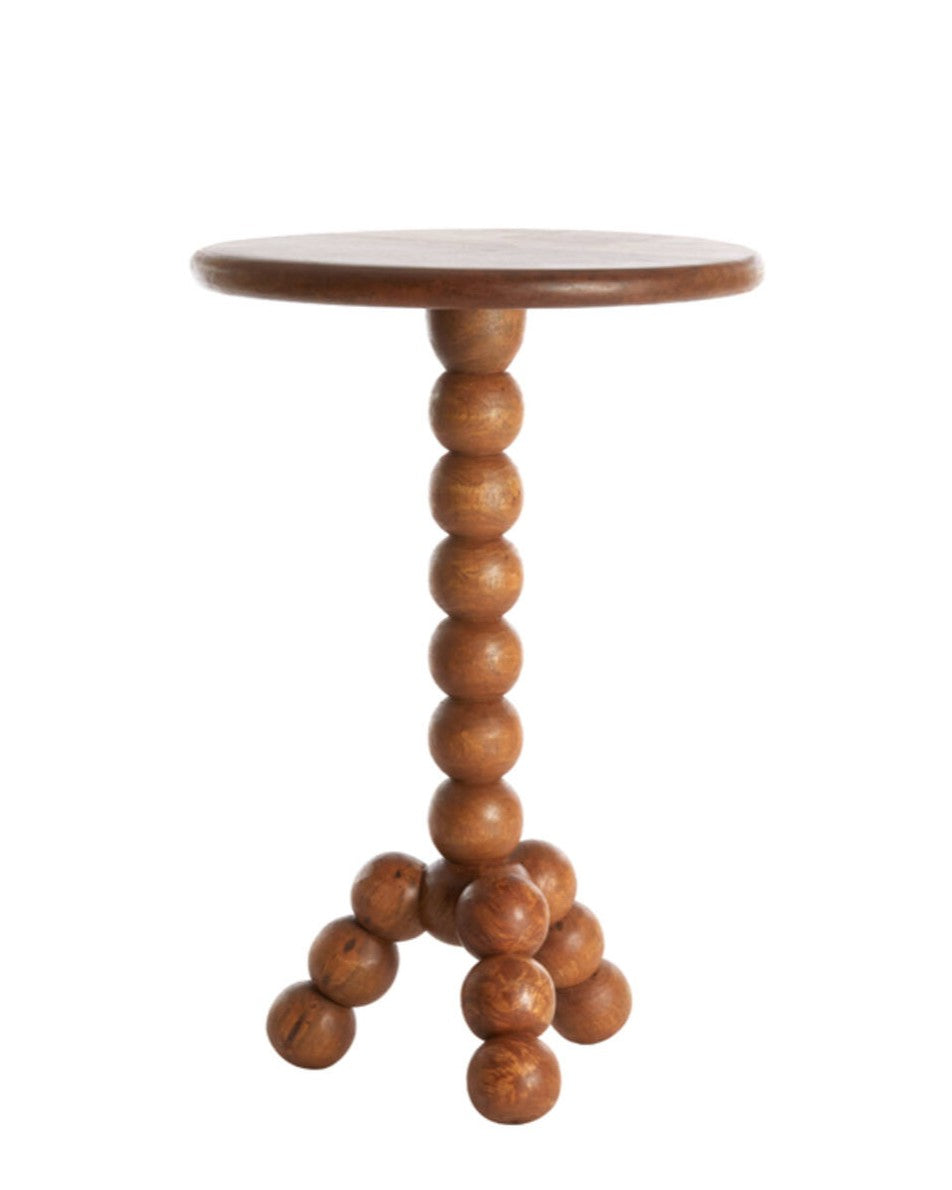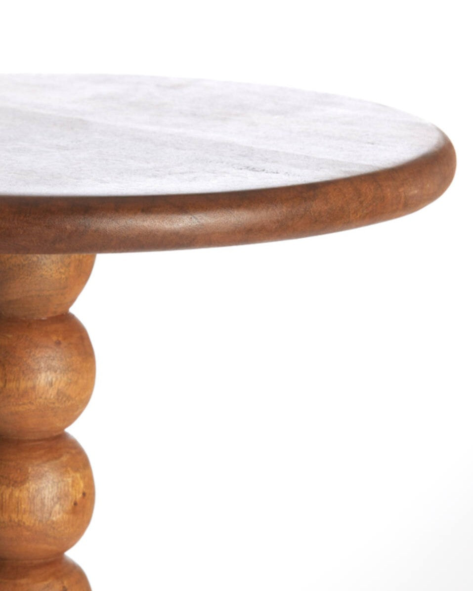 طاولة جانبية خشبية بتصميم كروي ولمسة فنية عصرية من أسلوب “Mid-Century Modern”