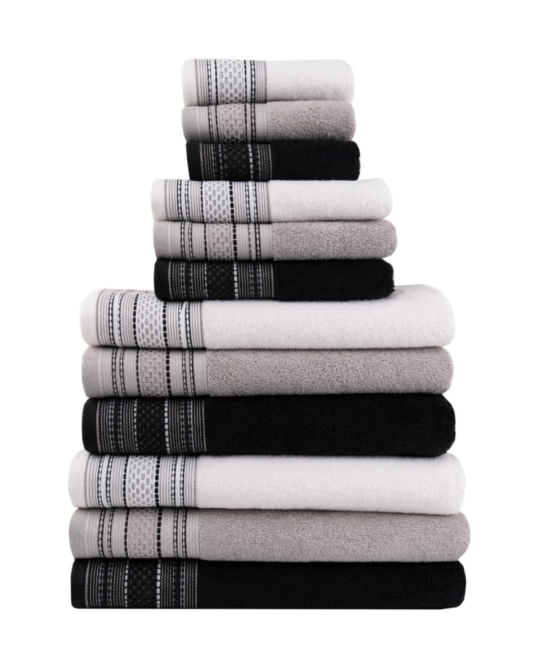 تتناغم درجات الأسود، الرمادي، والأوف وايت بتناغم فريد، لتضفي لمسة عصرية على ديكور حمامك وتمنحك حرية التنسيق مع مختلف الأساليب. التصميم العملي والأنيق يجمع بين المتانة وسهولة العناية، ليمنحكِ إحساسًا متجددًا في كل مرة تستخدمي فيها هذه المناشف.