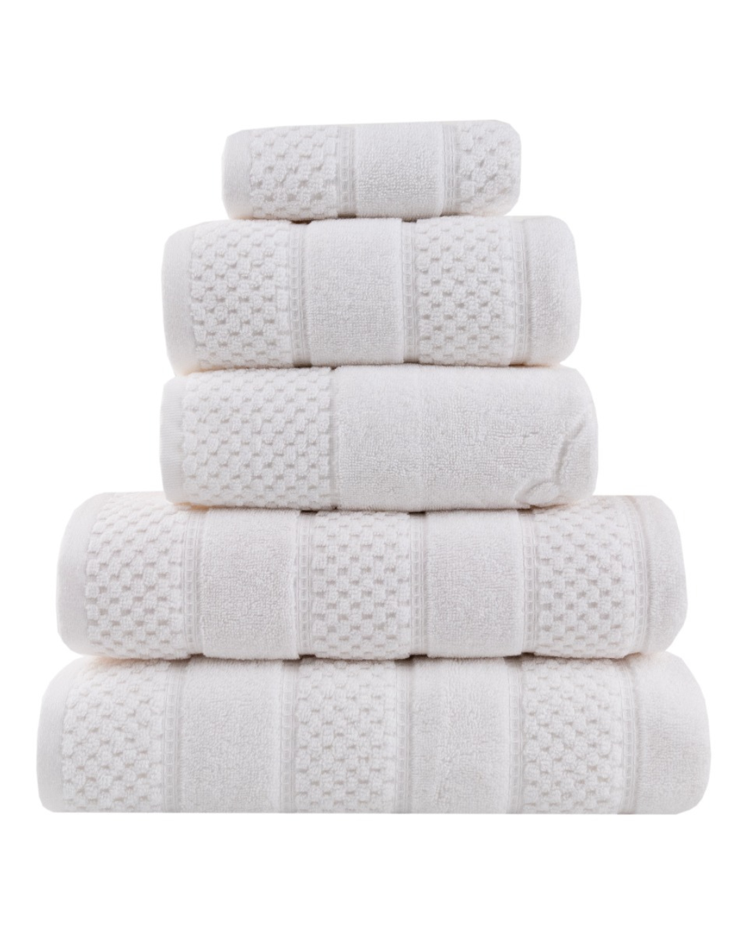 مجموعة مناشف قطنية بيضاء بنقوش هندسية ناعمة